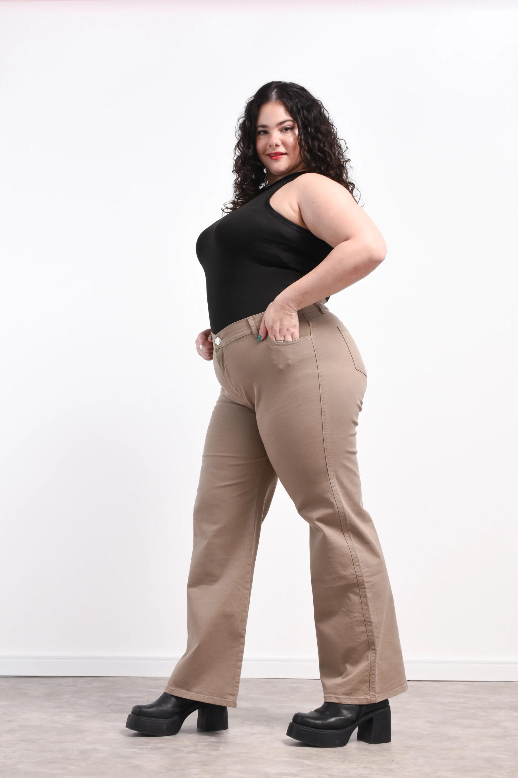 Wide leg color habano clásico tiro alto elastizado.