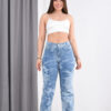 El jean recto adquiere una nueva dimensión en un vibrante tono azul claro. Su diseño clásico se fusiona con la autenticidad del detalle desflecado en el botamanga, ofreciendo un estilo único. Con su tela elastizado y tiro alto, esta prenda garantiza un ajuste perfecto y el confort que necesitas para cada momento.