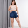 Short Pollera elastizado, tiro alto con un delicado diseño de margaritas grabado a láser.