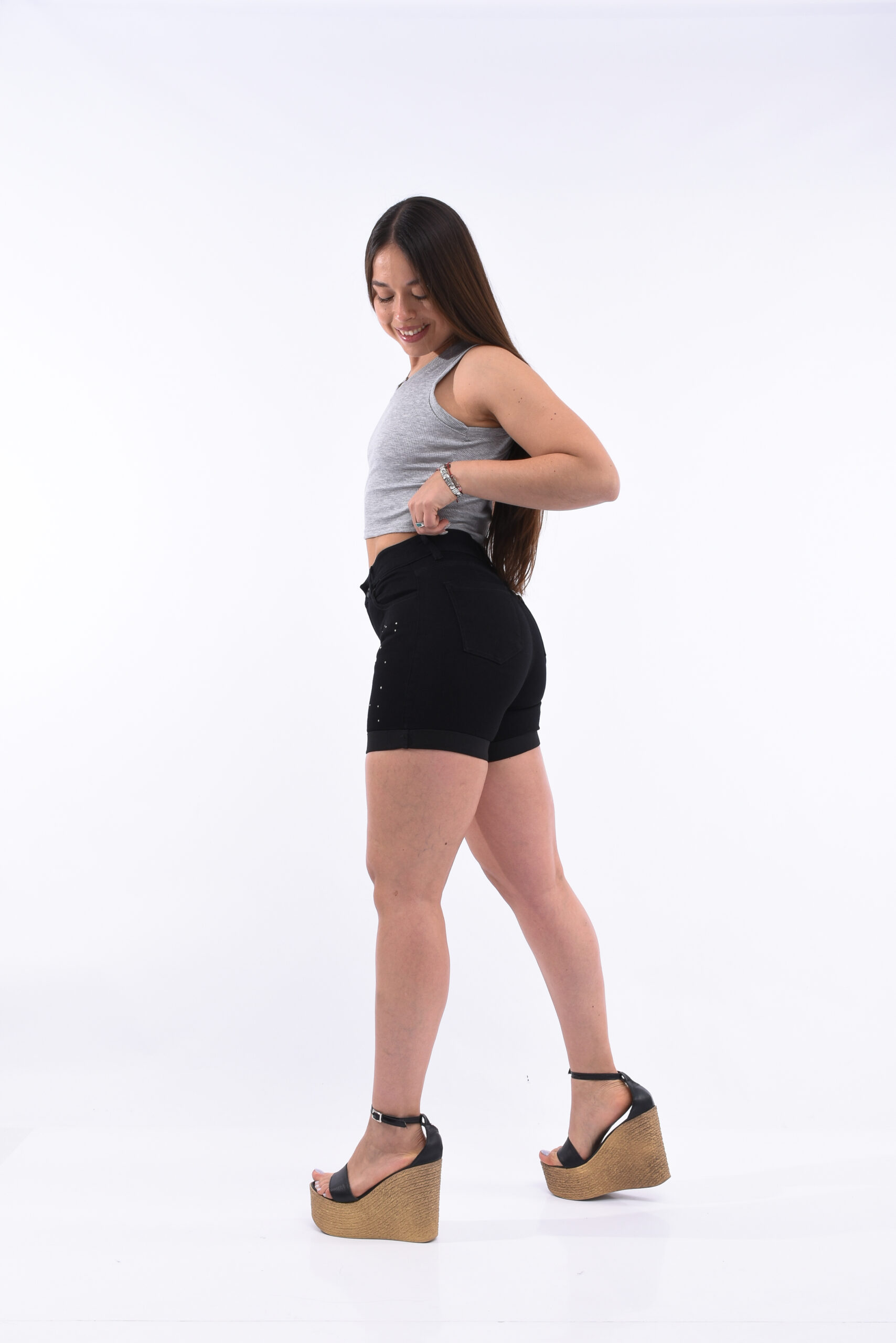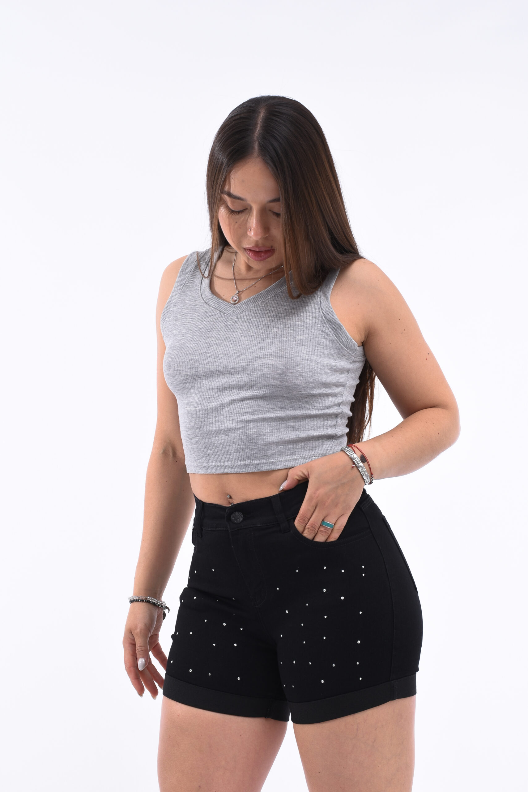 ART. VALERIA | SHORT NEGRO CON STRASS ELASTIZADO